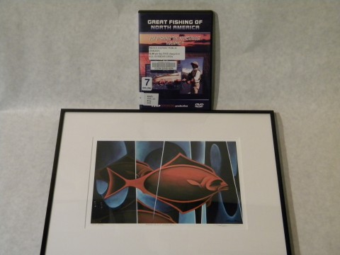 This picture, entitled "Halibut Heaven", featuring fish in their watery playground. Donated by Hans and Irmgard Buchholz from Studio 9, it was coupled with Fly-fishing the Northwest Volume 1. This is a limited edition 7" by 9.9" print of 525 of the original painting by Nathalie Parenteau, signed and numbered by the artist.