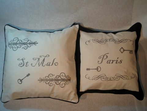 Home40. Two Handprinted Pillows by Ellen Witherly