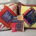 This two pillows are entitled "Red Web" and "Sea Weed at the Center". Donated by Jane Wilde, it was inspired by The Careless Quilter: Decide as you Sew, Design As You Go Quiltmaking by Kristin Miller, a former local who's influence on quilters of the area still resonates. Some of the fabrics used in these pillows are hand-dyed and both feature linen backs.