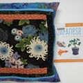 This is an Oriental-themed cushion top was created by Jean Clerihue and finished by Trish Banighen, and approximately 15" across. It's been paired with Super Simple Japanese Art: Fun and Easy Art from Around the World by Alex Kuskowski.