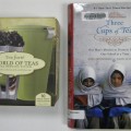 This is a tea-brewing system that combines a covered cup with fitted strainer and includes two satchets of five different varieties of tea. (Varie-teas?) We've paired the item with Three Cups of Tea: One Man's Mission to Fight Terrorism and Build Nations — One School at a Time.
