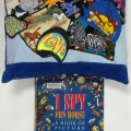 This pillow uses crazy-quilt and applique in a very free-form fashion, reminiscent of a dream sequence or "stream of consciousness". We've paired it with I Spy Fun House: a Book of Picture Riddles by Walter Wick & Jean Marzollo.