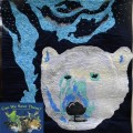Made from one of the Rob Appel Endangered Species patterns, this polar bear wall hanging is over four feet wide and is made from more than 50 individual fabric pieces and his hand embellished with beading. It was inspired by Can We Save Them?: Endangered Species of North America by David Dobson.