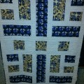 A perfect quilt for movie night! The front is pieced in a modern style with large blocks and white space. The fabric celebrates the BBC program Dr. Who and uses Exploding Tardis and regular Tardis fabric. The back side of the quilt is a nice soft flannel great for snuggling. Also included is an adult Dr.Who colouring book if you just want to make art.