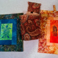 Sarah has donated two quilted potholders adorned with her block-printed motifs, a seahorse and a turtle, to grace your kitchen, and a very useful catch-all to have by your sewing machine. The pincushion hold it in place and the bag catches all the thread and fabric snippings. Pretty and useful, the bag is reversible so you can change the mood at will! To showcase one of Sarah’s many talents, we have chosen Block Print- Everything You Need to Know for Printing with Lino Blocks, Rubber Blocks, Foam Sheets and Stamp Sets (all of which Sarah does!).