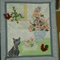 Joan really likes to make cat quilts and this recent project is a lovely example of her work. Joan would like us to take special note of the flowers.