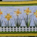 Inspired by the poem “Daffodils” by William Wordsworth (that I have loved since high school). When I came across the pattern in a “Quiltmaker” magazine from 2001, I knew that one day I would make this paper-pieced wall hanging. This past winter, while snowbirding, I made it and entered it in the park Craft Fair, garnering a 2nd place ribbon. I now want to pass it on to the Cancer Auction this fall – and hope whoever bids on it will think of family and friends as I did while I was sewing it up!