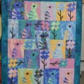 This colourful quilt is the result of a quilting challenge in 2008-9 based on the style of quilting we, the loosely organized Coastal Quilters and friends, learned from Kristin Miller and her book The Careless Quilter. Some of the Coastal quilters have been quilting together since the 1970s.