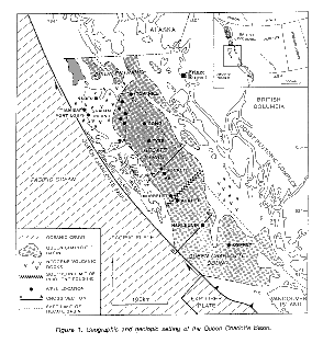 Figure 1 (Click on picture at right to get full image) Geographic and geologic setting of the Queen Charlotte Basin.