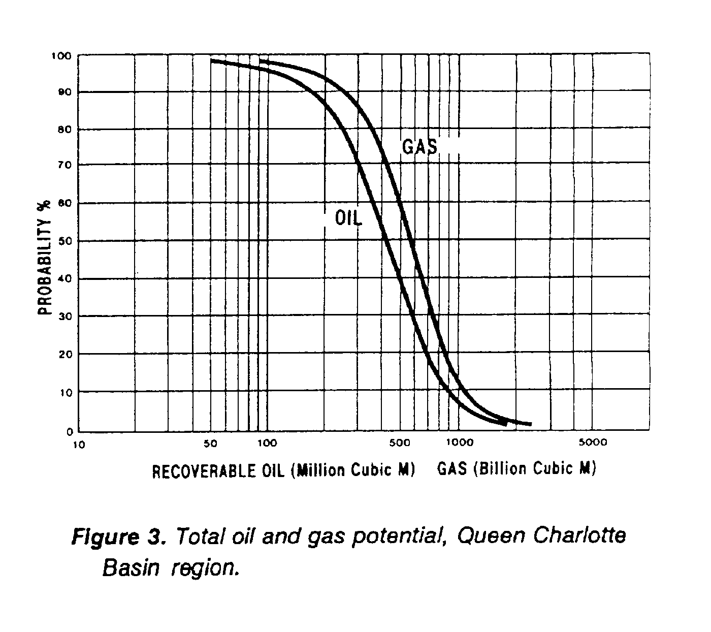 Figure 3 (Click on picture at right to get full image) Total oil and gas potential, Queen Charlotte Basin region.