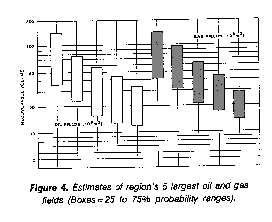 Figure 4. Estimates of the region's five largest oil and gas fields (Boxes = 25-75% probability ranges).