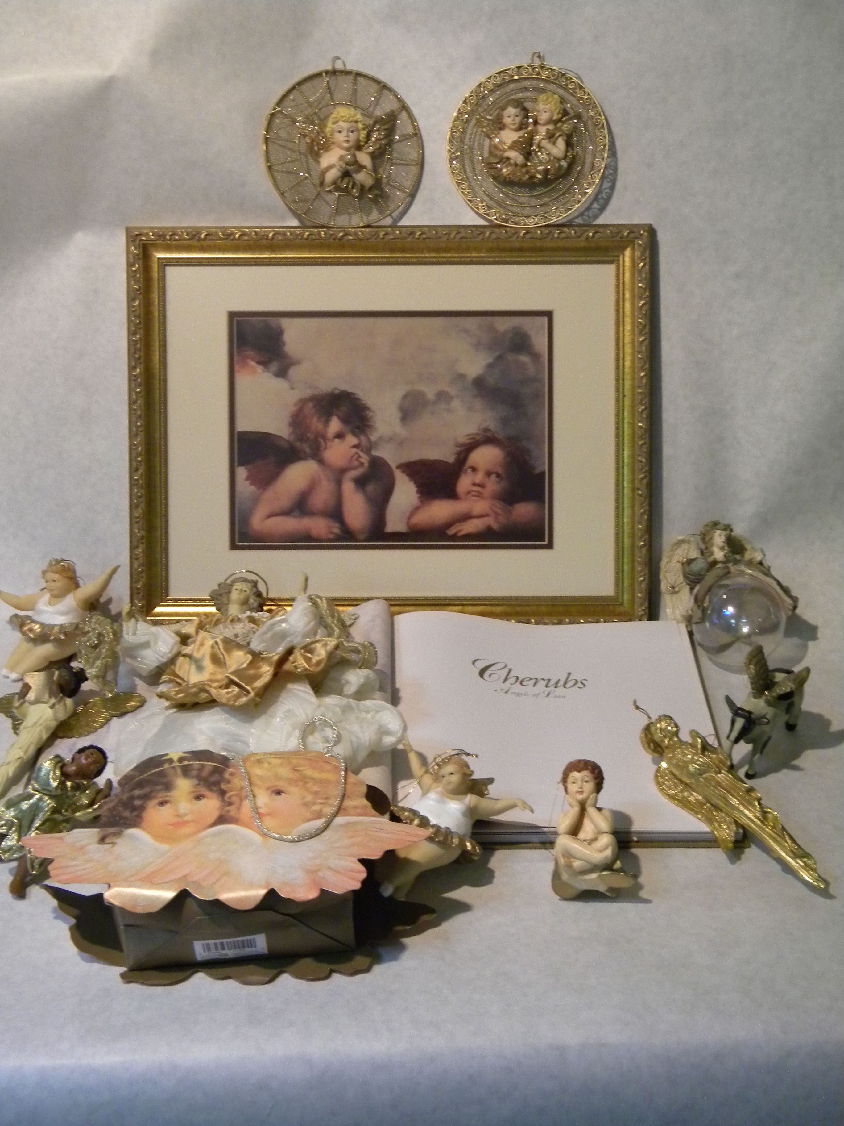 Not the full collection above; there's more, but I couldn't find a head of a pin to fit them all on. This impressive angel collection was donated by Coral and James Carr, and was inspired by Cherubs: Angels of Love by Alexander Nagel. The book was donated with the collection and will be auctioned off as part of it.