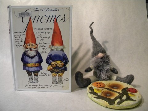 This beautiful gnome and sunny stone was donated by a "Friend of the Library". Perhaps the Wee Folk are looking to help us out? We've coupled it with Gnomes by Wil Huygen, but this little guy needs help finding a home. (We're not sure he can see with his hat pulled down like that.)