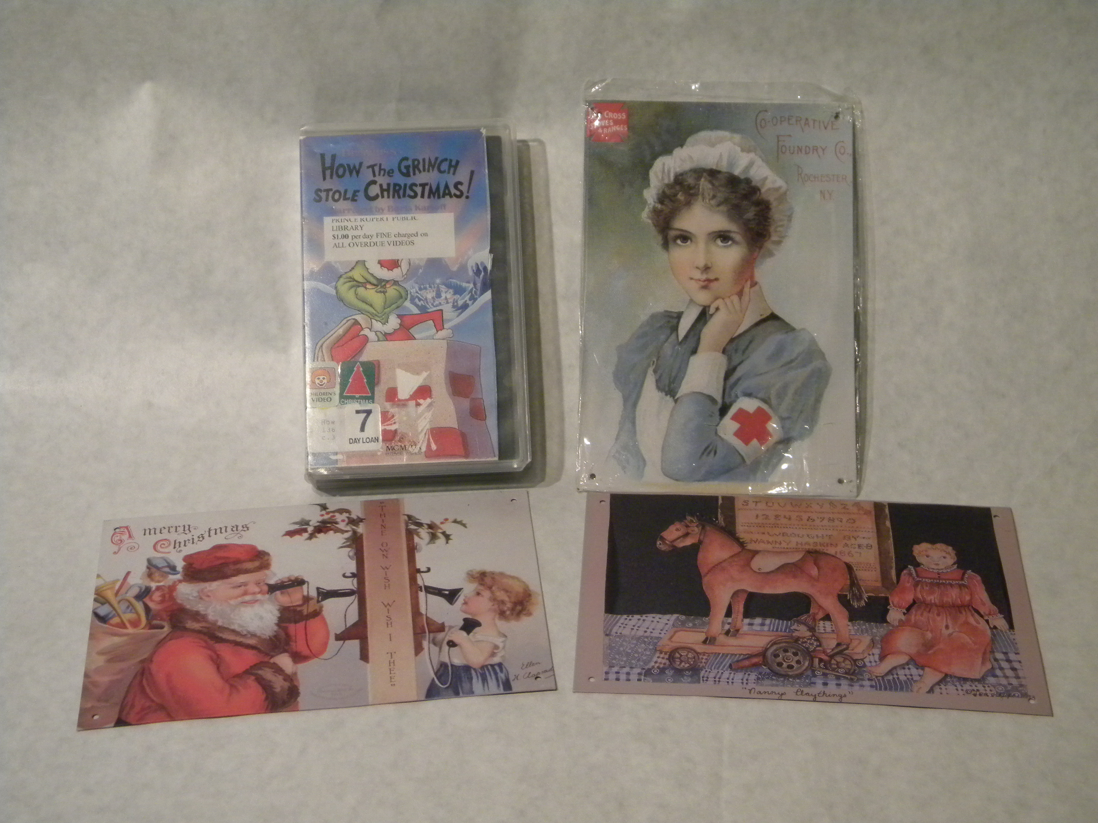 These tin signs represent bits of Christmas, from toys, to Santa, to aiding others. Donated by Coral and James Carr, they have been coupled with The Grinch Who Stole Christmas, the movie based on the famous Dr. Seuss book. These signs are beautiful, done by a variety of artists and reminiscent of times past.