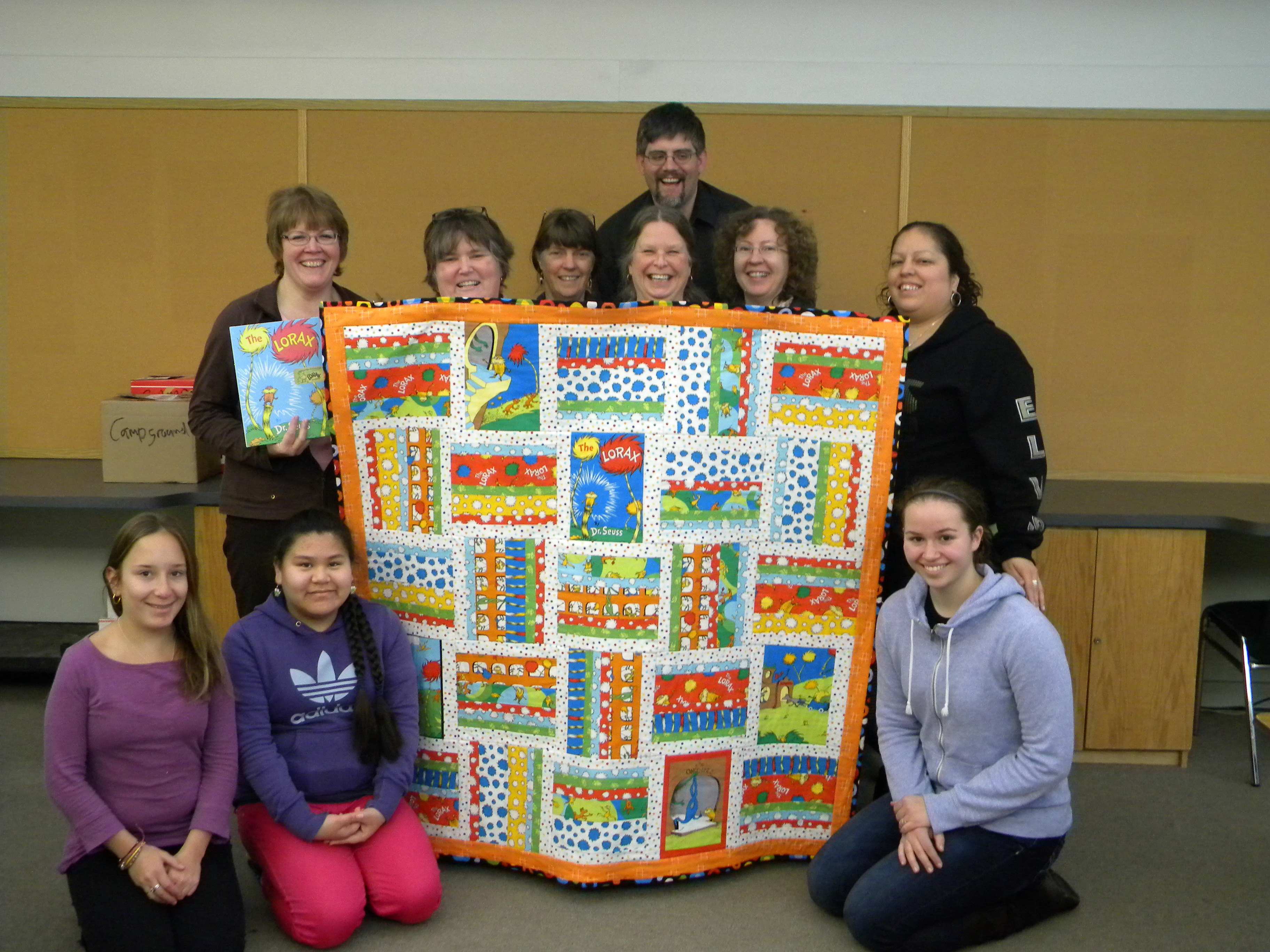 Home16. Lorax Quilt with Book and Tote Bag - Prince Rupert Library Staff and Family