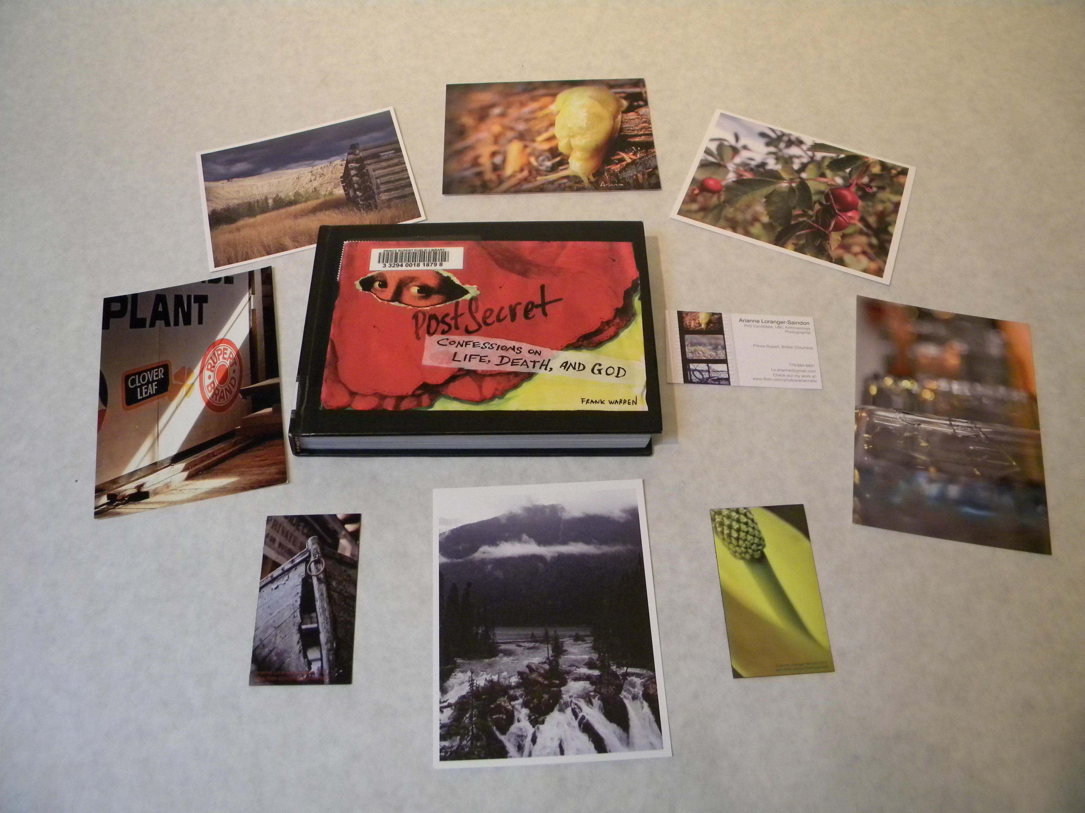 Six high quality postcards and two fridge magnets featuring stunning photography, this submission was donated by the photographer, Arianne Loranger-Saindon, and was paired with PostSecret: Confessions on Life, Death & God compiled by Frank Warren.