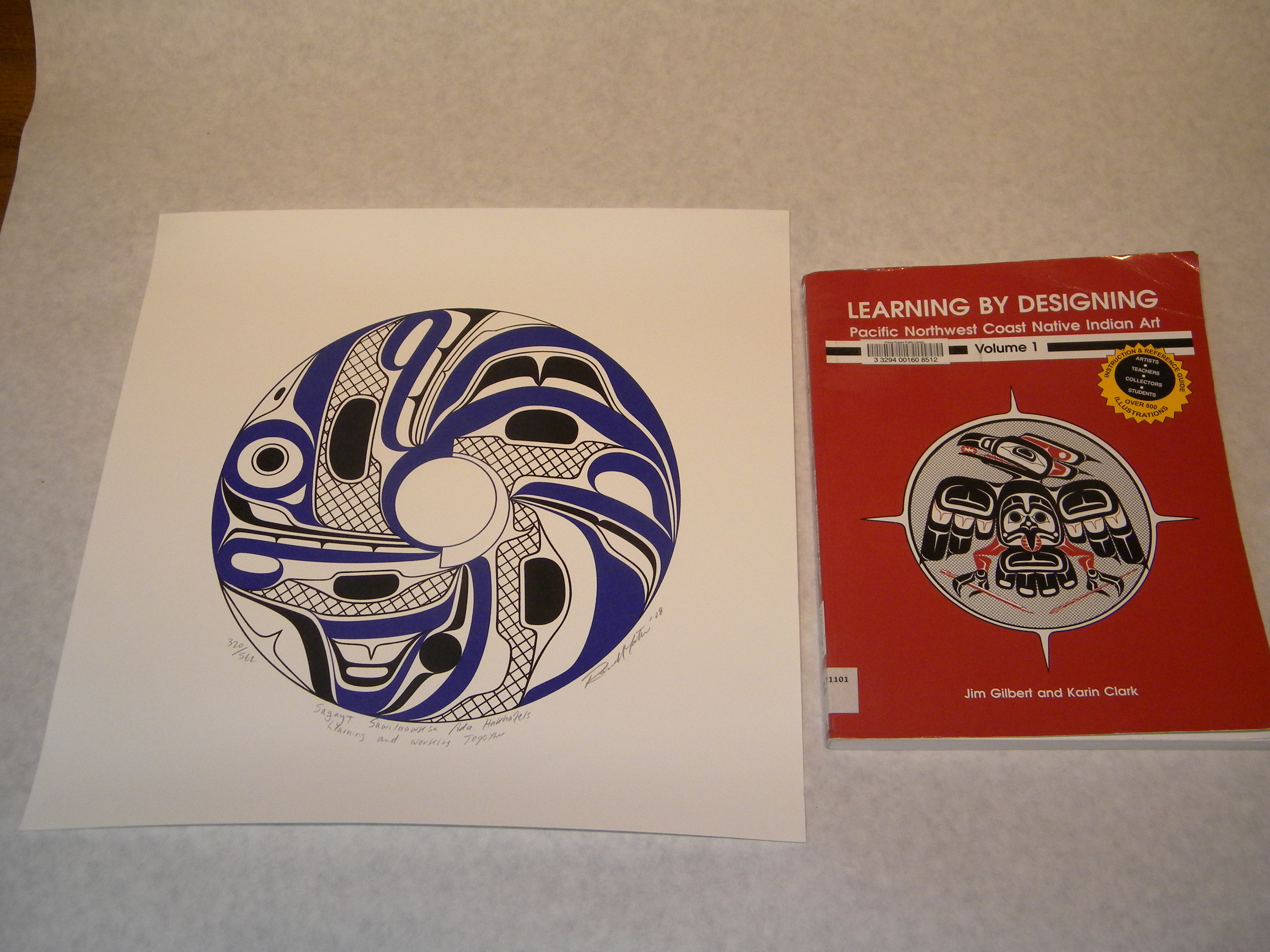The title says it all. Donna has generously donated this gorgeous signed print by Tsimshian artist Russell Mather, valued at $50.00. Library staff chose Learning by Designing by Jim Gilbert and Karin Clark as companion to this artwork.