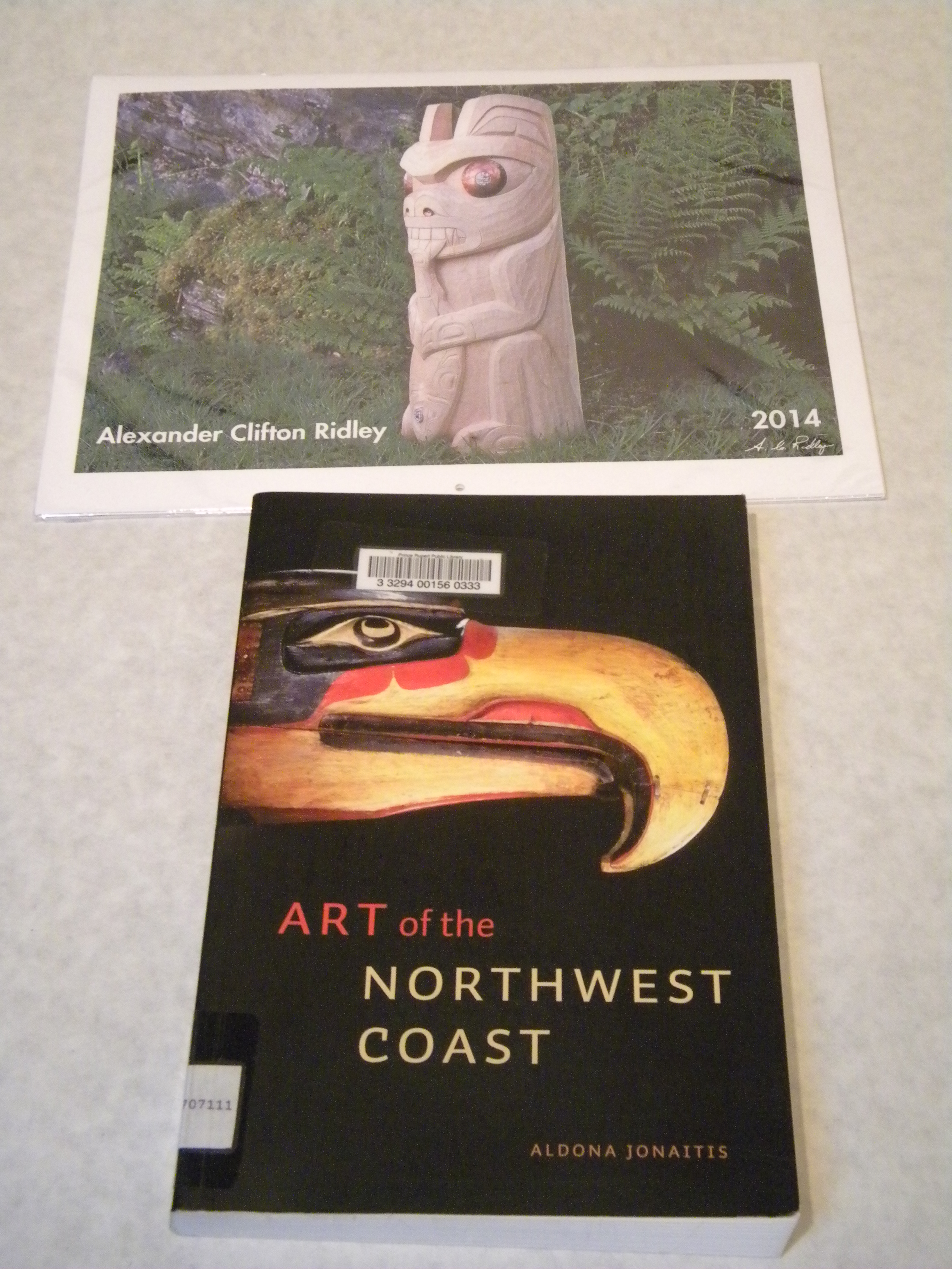 Every year we are fortunate to have Mr. Ridley share his art with us. This year brings this beautiful calendar with the Spirit Bear Totem Pole on the cover. The calendar is full of photos of Mr. Ridley's art work. We chose the book Art of the Northwest Coast by Aldora Jonaitis.