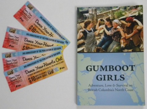 Four tickets for the big dance on November 7th @ 8 pm @ Raffles Bar and a copy of the renowned local book Gumboot Girls: Adventure, Love & Survival on British Columbia's North Coast.
