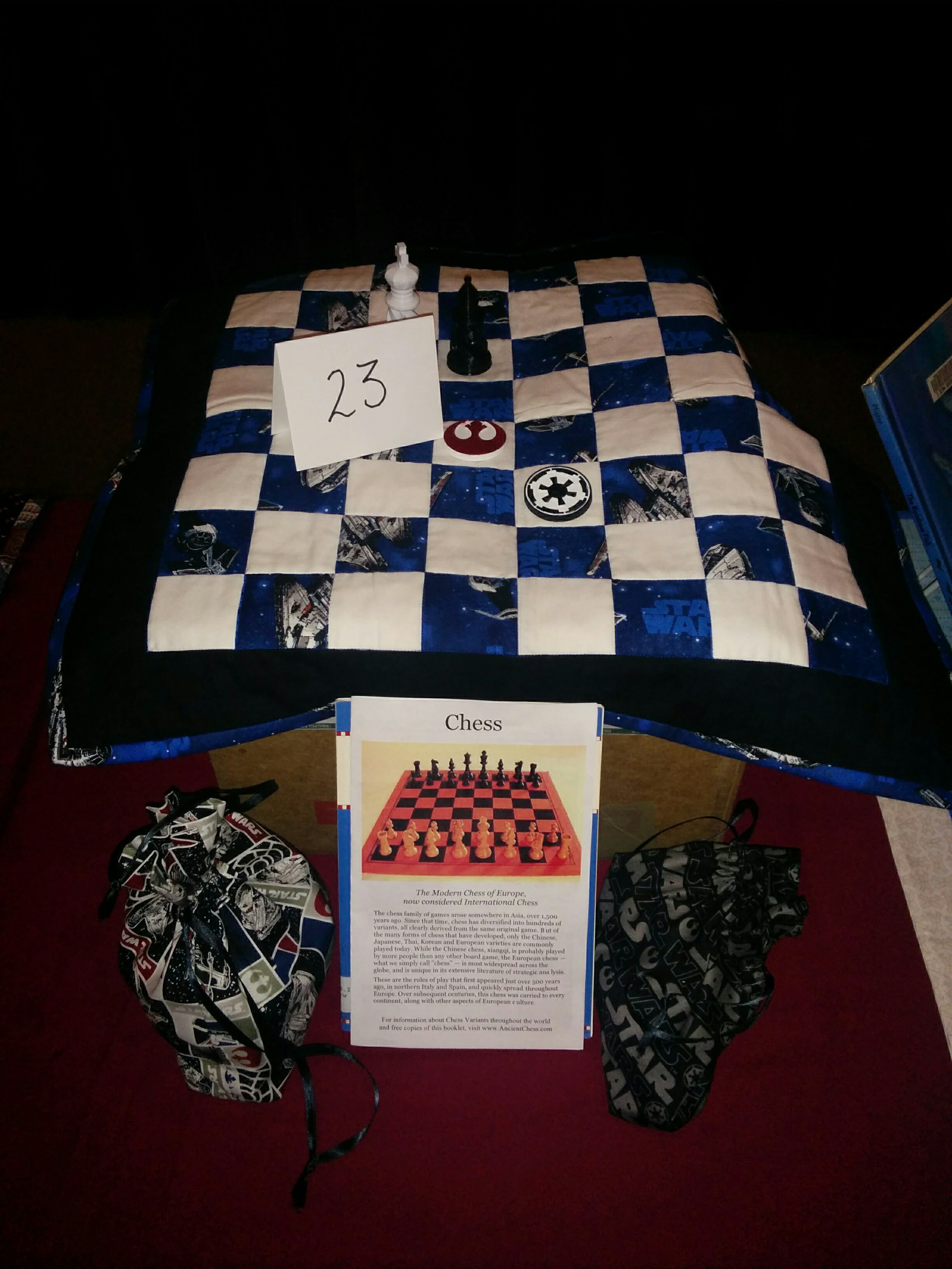 23 - Star Wars Quilted Chessboard and Bags with 3-D Printed Chess and Checkers by Prince Rupert Library Staff