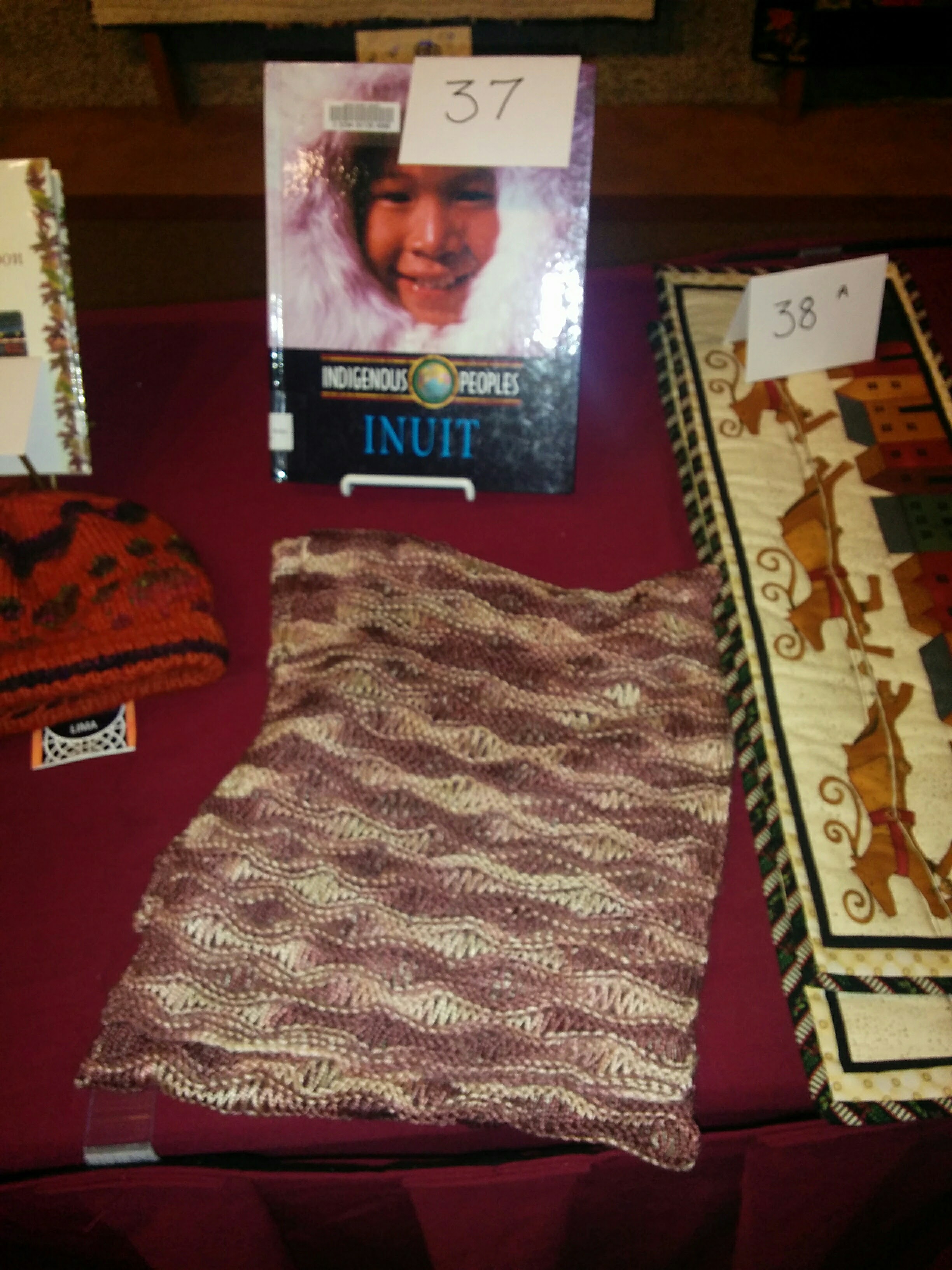 This scarf is inspired by the North Star pattern of Donna Druchunas in her book of Oomingmak knitting. The scarf took more than one hundred hours to create and is four feet long and eight inch wide scarf.