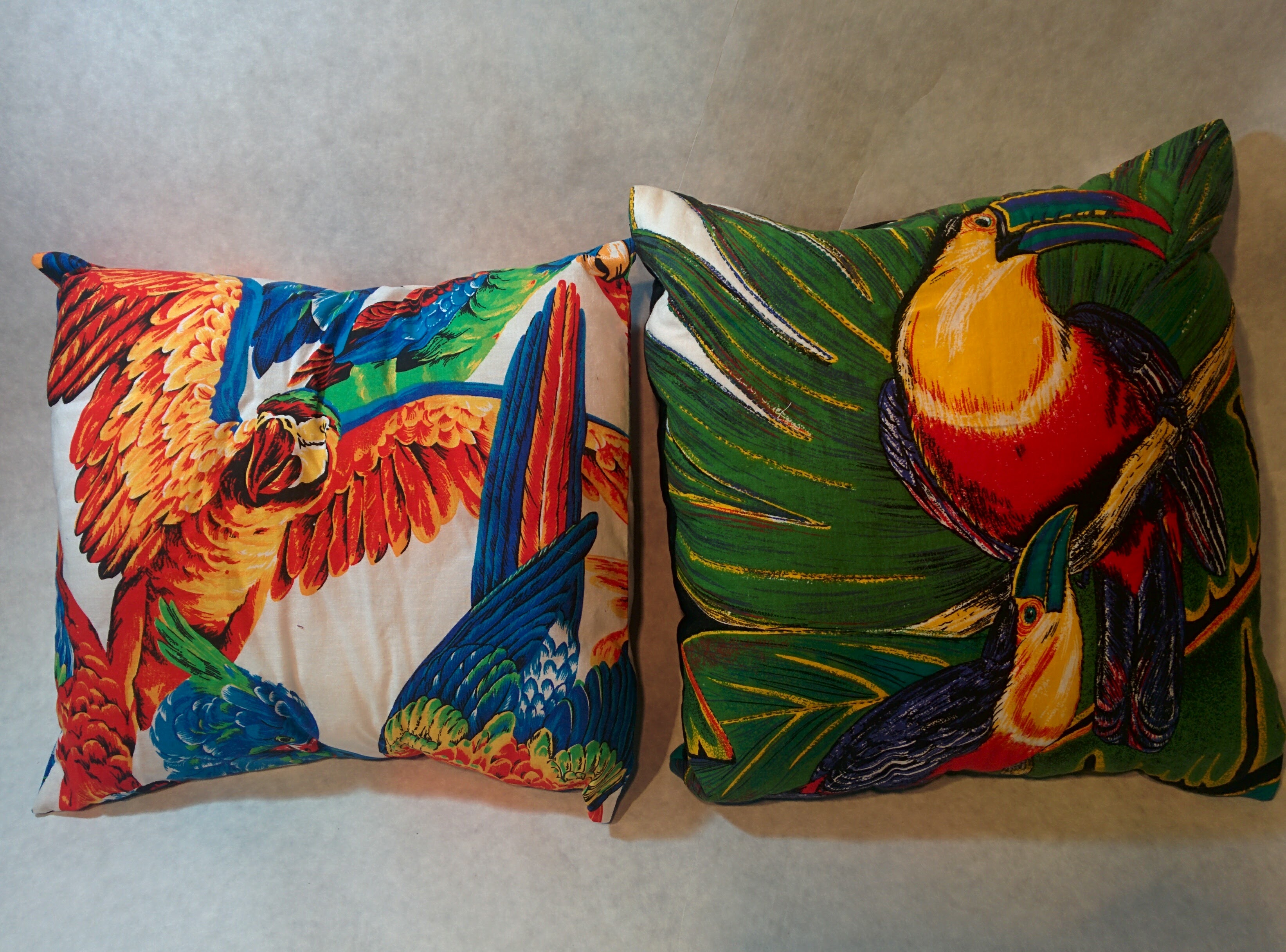23. Two Tropical Bird Throw Pillows by Trish Banighen
