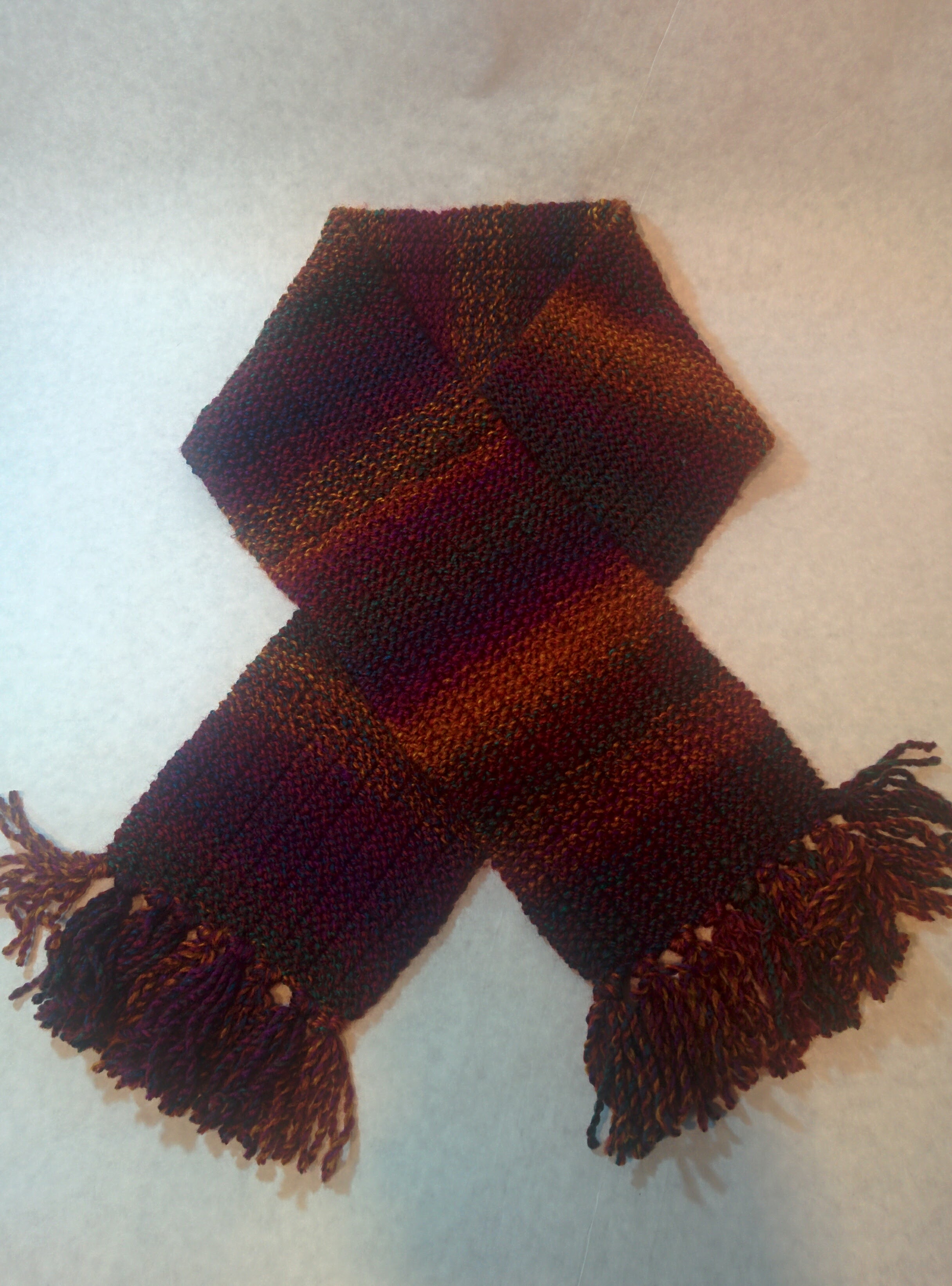 Laura wrote "Knitting is totally rewarding and relaxing. Enjoy this soft and cozy scarf made with “marble” variegated yarn”. We chose the book Scarves by Vogue Knitting to accompany this donation. Laura would appreciate a minimum bid of $20.