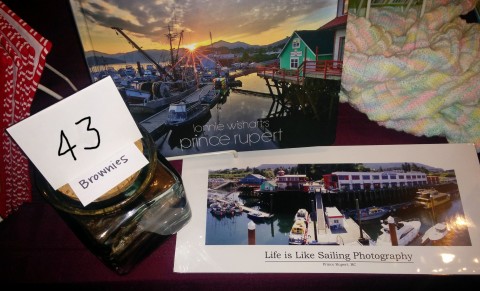 This photo was taken from the mast of the sailing vessel Moonshine, donated by Life is Like Sailing and showing Prince Rupert’s beautiful waterfront. Tasty treats are for eating while admiring your new print. We paired the book Lonnie Wishart’s Prince Rupert, with this donation.