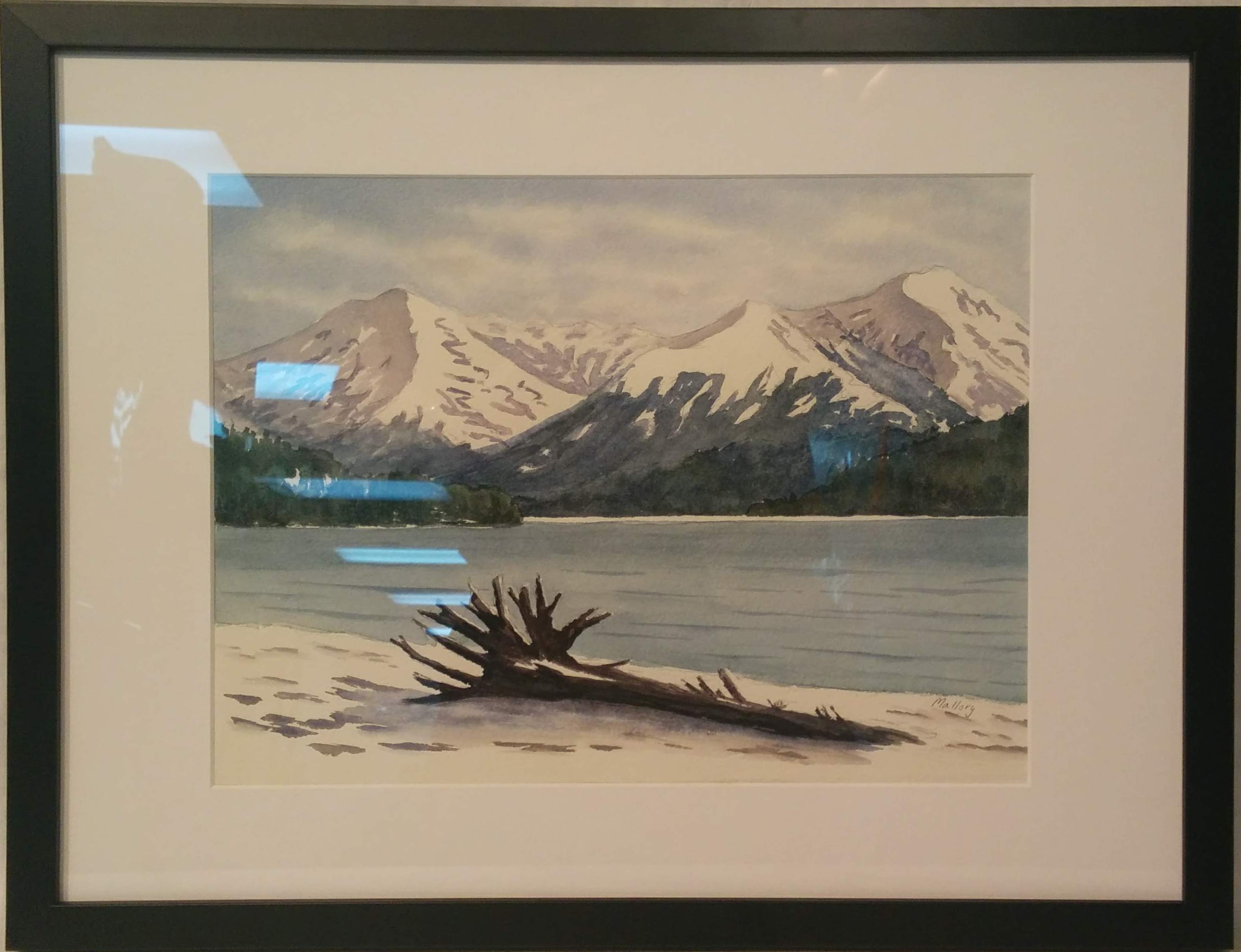 This framed watercolor was based on a photo taken by Mallory while traveling along the Skeena on Via Rail. This item measures approximately 20.5 by 16 inches, and has been paired with Canada by Train.