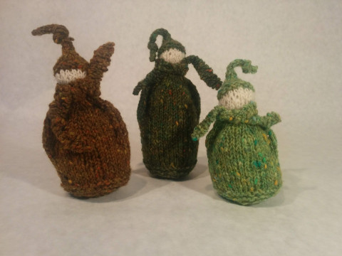 These little elves were very finicky to knit and would love to serve as soft toys or adorn a mantle. It took Emerald about three hours to make each elf. Paired with The Little World of Elves and Fairies.