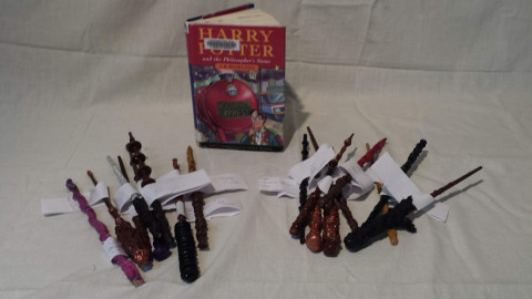Sarah Clarke: 2 sets of Wands: Sarah, who is in Grade 7, was inspired to make all these wands from chopsticks (with findings, hot glue and paint), by the Harry Potter books. It takes her about an hour to create each one. We are auctioning them at her suggestion, in 2 sets of 9 each. “Harry Potter and the Philosopher’s Stone” by J.K. Rowling.