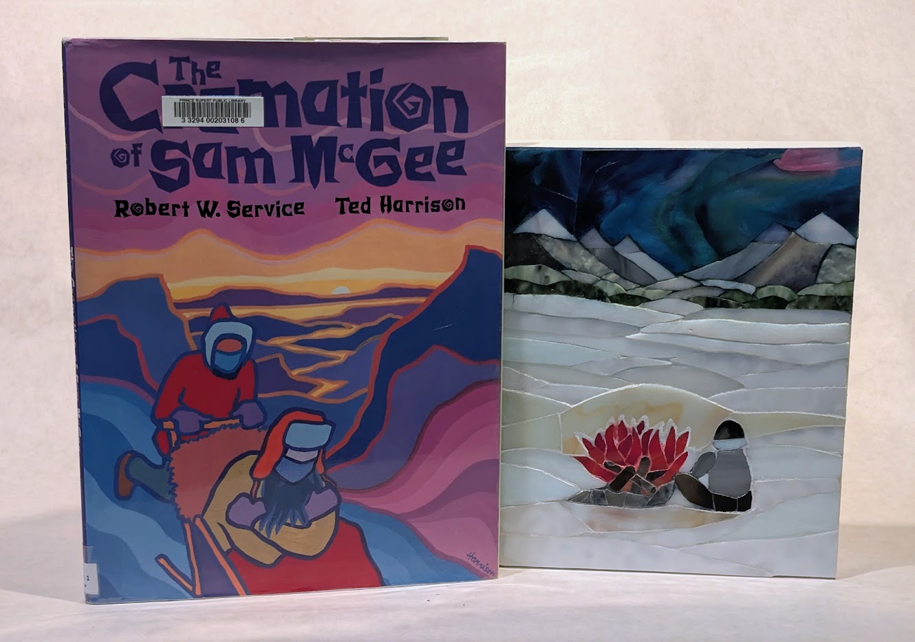 Inspired by the poem "The Cremation of Sam McGee", this has been a project Dolly has long wanted to do. Initially, it was planned as paint on silk, but a new interest in mosaics brought this piece into being. Special thanks from Dolly to her instructor and friend Sandra Cummings for helping her develop her own style in her studio.