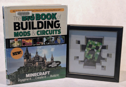 Given that the creeper is the most iconic Minecraft enemy, who hisses and explodes, destroying all the work of building, perhaps it should be a crossssssssstich? This piece is framed and cleaned, and was originally donated to the auction in 2015, but the first seller's child has grown away from Minecraft. Perhaps you can give it a home? Probably a sturdy one.