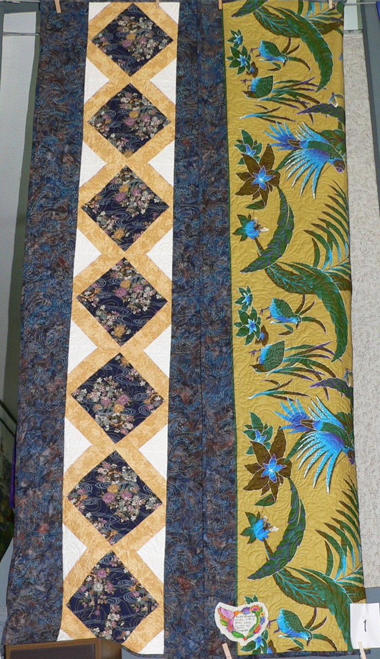 This quilt design was adapted from a pattern called Pennsylvania Turnpike. Sandra pieced the quilt in April 2009, and had her work professionally quilted by Betty Doering of Terrace, BC.