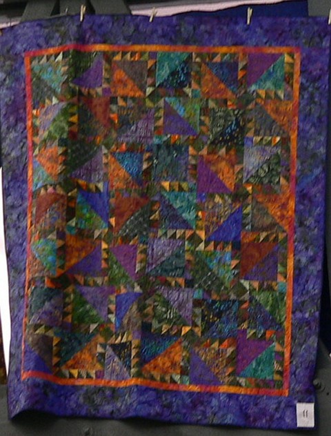 "I started this quilt to use up a lot (over 300) of half triangles that I had made for another quilt, but didn't use. This block is called 'Delectable Mountains'. I thought this arrangement was my original idea, but I realized after I made it that I must have seen it in a book called Scrap Quilt Sensations.