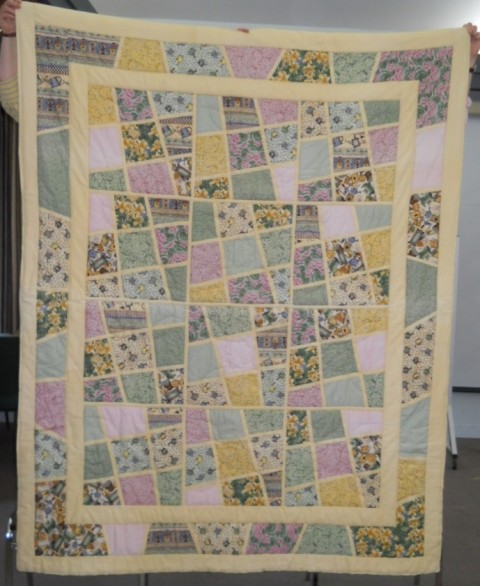 From a pattern by Kathleen Bissett, this quilt was pieced, then hand-quilted. This is the first quilt of nine that I made of this pattern. As you can tell, I love this pattern!
