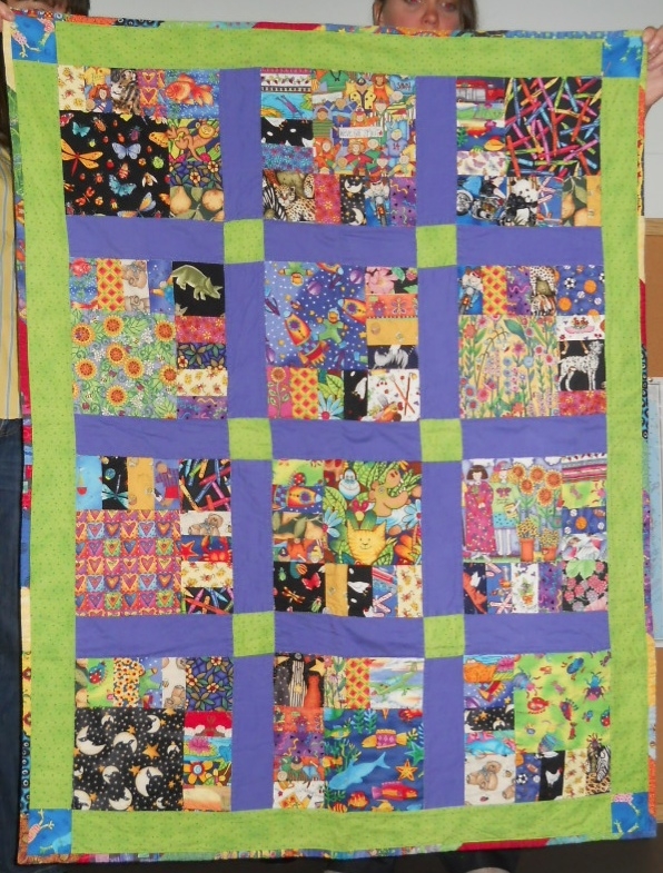In 2009, when we found out that we were expecting twins to complete our family, several members of the Big Rain Quilt Guild here in Prince Rupert offered some fabric to help me finish two more “I Spy” quilts. Our twins are now two years old and still snuggle with their quilts every night, so I couldn't include their quilts in this year's show. Perhaps their quilts will be displayed in the years to come!