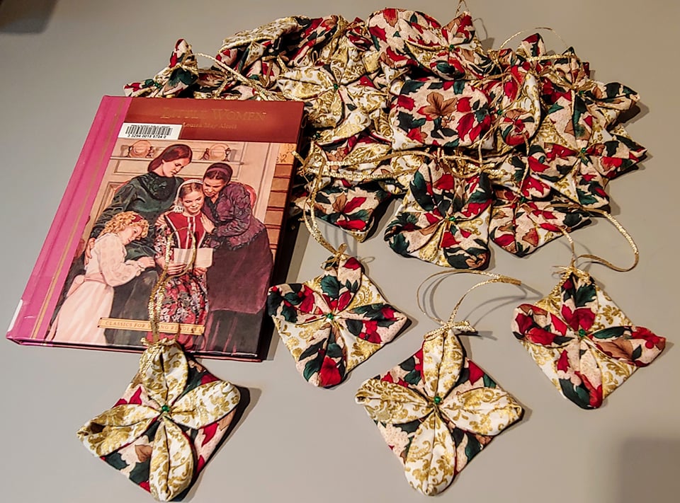 Beautifully stitched "Cathedral Window Hanging / Tree Ornaments" (18 red, 18 gold)