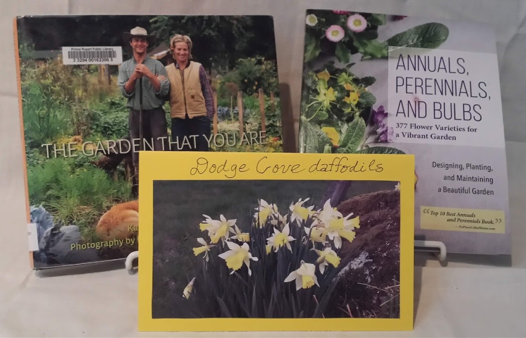 Lou Allison: Dodge Cove Daffodils: Dodge Cove is noted for its spring display of naturalized daffodils, especially on CBC Hill. Since the 1940s, these simple old-fashioned daffs flourish year after year, surviving wind and late frosts, even snow, where fancier varieties succumb. Included are the bulbs, planting instructions and a lovely gardening book on growing flowers. The book is worth $25, the bulbs are priceless and the advice is free. Paired with one of Lou's favourite gardening books from the library's collection: “The Garden That You Are”, by Katherine Gordon.