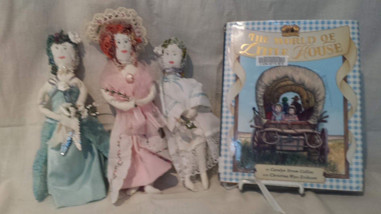 Trish Banighen: Pioneer Dolls: beautiful handmade dolls lovingly made by using recycled fabrics and scraps from formal wear, party favours, antique handkerchiefs etc. The hair was made from threads trimmed from unraveled edges. These dolls are not suitable as playthings for children; they are suitable for display as collectibles. Such old-fashioned dolls recall “ The World of Little House” about the life and writings of Laura Ingalls Wilder.