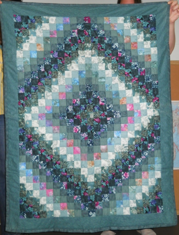 This quilt was created to honour the First Nations Elder, Angela Sidney. Her story is told in Life Lived Like a Story, by Julia Cruikshank. Each fabric was thoughtfully chosen to represent a time in the passage of her life.